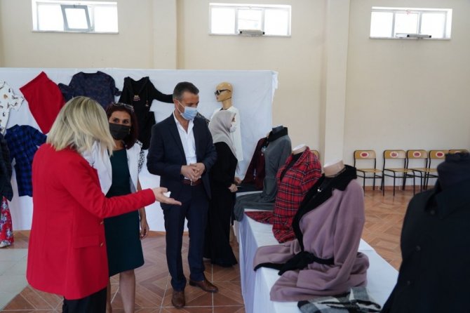 Bilecik Belediye Başkanı Semih Şahin, Aşağıköy dikiş kursunda faaliyet gösteren kadınların el emeği göz nuru ürünlerinin sergisini ziyaret etti.