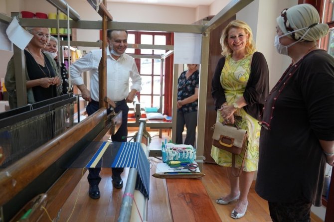Bilecik Belediye Başkanı Semih Şahin, Aşağıköy dikiş kursunda faaliyet gösteren kadınların el emeği göz nuru ürünlerinin sergisini ziyaret etti. .