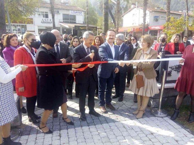 Serginin açılışında kadınlardan kurulu Halk Eğitim Merkezi halk oyunları ekibi Fethiye yöresi oyunları sergiledi. Ardından resim sergisinin açılışı, Fethiye Belediye Başkan Vekili Melek Gözde Gürsoy Hoşafçı, belediye başkan yardımcısı Oğuz Bolelli, Ak Parti Fethiye ilçe başkanı Turgay Öztürk, Fethiye İlçe Milli Eğitim Müdürü Faruk Kaya tarafından yapıldı. Açılışta kadınlara kırmızı karanfiller taktim edildi. Açılış töreninde konuşan Fethiye İlçe Milli Eğitim Müdürü Faruk Kaya " kadının olmadığı toplum asla düşünülemez. Hepimiz bir anadan dünyaya geldik. Hepimizin bir anası var. Onların elinde büyüdük, bu günlere geldik. Dünyayı yapan ve kuranı kadın olarak düşünüp bir kez daha bu özel günde saygılarımızı ifade ediyoruz" diye konuştu.