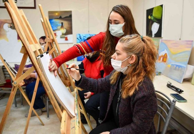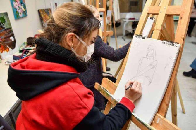 Tepebaşı Belediyesi, gerçekleştirdiği kurslar ile kent sakini kadınlar için farklı eğitimler sunmaya devam ediyor. Mustafa Kemal Paşa Belde Evi'nde gerçekleştirilen karakalem kursu kadınların yoğun ilgisi ile devam ediyor. Gruplar halinde 24 kadın, haftada iki gün çizim tekniklerini öğreniyor. Belde Evleri'nde düzenlenen kurslar sayesinde, nezih bir ortamda kendilerini geliştirmekten ve sosyalleşmekten memnun olduğunu belirten kadınlar, Tepebaşı Belediye Başkanı Dt. Ahmet Ataç'a da teşekkürlerini iletiyor.