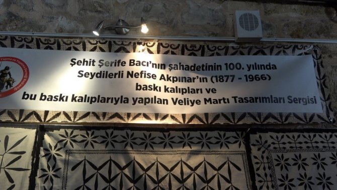Seydiler Şehit Şerife Bacı Kültür Evi Yapma ve Yaşatma Derneği Başkanı Şerife Şahin, "Seydiler'in Çırdak köyünde ikamet eden Nefise Akpınar, taş baskı yaparken kendi ifadesiyle, "Bu evin penceresi, bu gözler bu da yollar" demiş. 12 yıl boyunca kocasını pencereden gözetlemiş, cephede savaşıyormuş kocası. Biz de bunları alıp tasarım haline getirdik ve burada da beğeniye sunuyoruz" dedi.