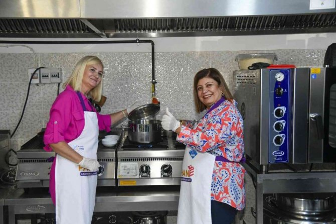 Adanalı ünlü yemek bloggeri Nurşen Aksoy, Adana Büyükşehir Belediyesinin mutfak atölyesi Payhane'de, Adana Büyükşehir Belediye Başkanı Zeydan Karalar'ın eşi Nuray Karalar'la birlikte yemek yaptı.