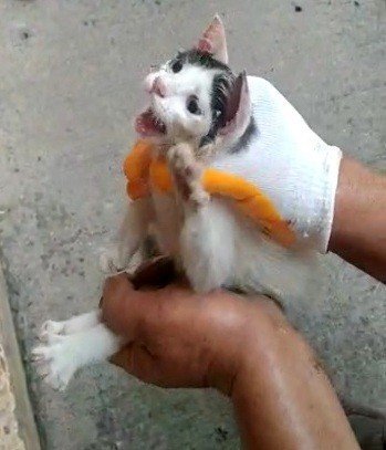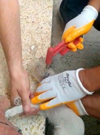 Osmaniye Belediyesi Kademe Amirliği Bakım ve Onarım Atölyesinde görevli bir personel çöp konteynerinin arkasında yavru bir kedinin başının cam kavanoza sıkıştığını gördü. Kedinin kendi çabaları ile kurtulamayacağını anlayan personel, kediyi bulunduğu yerden alarak itfaiye müdürlüğüne götürdü. Kedinin zarar görmemesi için önce kavanozu bantla saran ekipler, ardından bir çekiç yardımıyla kavanozu kırdı. Kırılan cam titizlikle kedinin kafasından çıkartıldı. Daha sonra yavru kedinin kendine gelmesi için ekipler tarafından kedinin vücuduna su tutuldu. Cam kavanozdan kurtulan kedi saniyeler içerisinde kaçarak uzaklaştı.