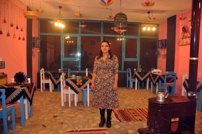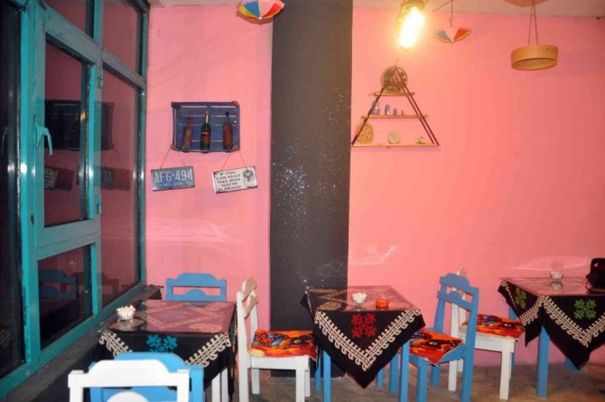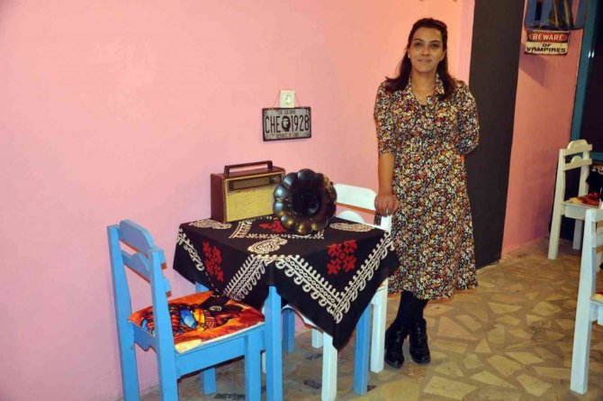 Hakkari'nin Yüksekova ilçesinde yaşayan Özlem Zengin, sahibi olduğu kafeyi atık malzemelerle süsledi.