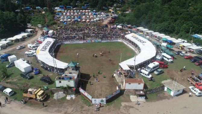Artvin'de, 40'ıncısı düzenlenen Kafkasör Kültür Turizm ve Sanat Festivali renkli görüntülere sahne oldu. Bin 200 rakımlı Kafkasör yaylasında düzenlenen boğa güreşlerine, Artvin ve ilçeleri olmak üzere Rize ve Erzurum illerinden 79 boğa sahibi katıldı.