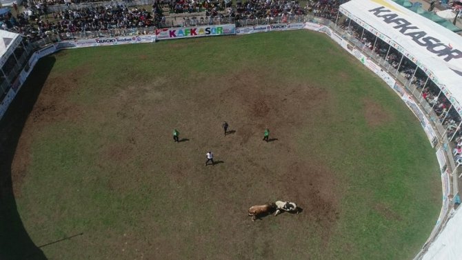 Kafkasör boğa güreşleri renkli görüntülere sahne oldu
