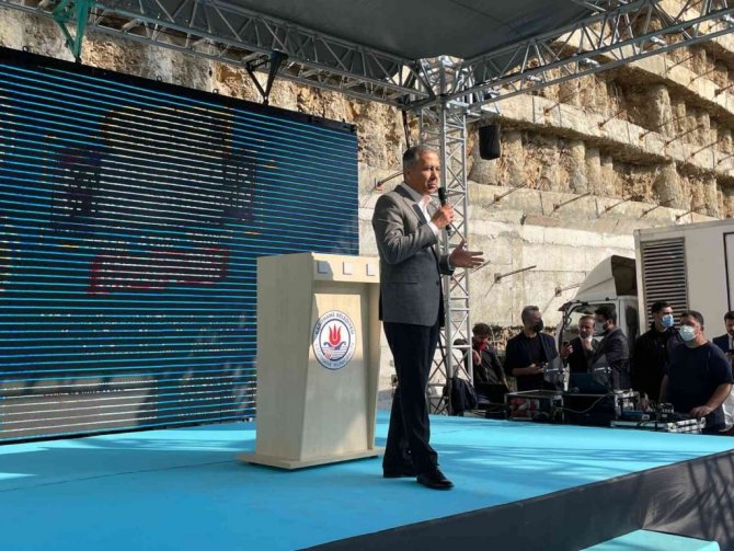 Törende konuşan İstanbul Valisi Ali Yerlikaya, "Gültepe Telsizler Mahallesi, her santimetre, her metremiz değerli bizim için İstanbul'umuzda. Taşımız toprağımız altın ya kim söylediyse bu sözü, bunu yakalamak lazım. Gerçekten de öyle ama şimdi şu gördüğünüz alanın bir kısmı hazinenin, bir kısmı da belediyenin. Belediye başkanımız dedik ya şehrin emini, 53 söz verdim her bir sözünü Kağıthane'ye tek tek mahalleliye, hemşeriye gerçekleştirmek için gece gündüz demeden çalışıyor. Buranın park sorunu var. 440 araçlık teknolojik bir park yapılacak. Şimdi güvenlik burada, esnaf kaldırım, yol belli. Bunları değiştirme şansımız yok. Pazar yeri hanım kardeşlerimiz aramızda, kışı var yağmuru var, soğuğu var araç nasıl olacak? Gölge veya soğuk, rüzgar, olumsuz hava koşulları dolayısıyla kapalı olarak biz burada otopark, katlı otoparklarımız ve pazar yerimiz, üstünde de gündüz okullarımız açık. Mesleki Teknik Anadolu Lisesi'ndeki gençlerimiz halı sahadan faydalanacak. Mesai bitti, anahtar kimde şehrin emininde, belediyede olacak. Belediye buradaki mahalleliye bunu kullandıracak, gençlerimiz istifade edecek. Işığı sönmeyecek. Hedefimiz bu. Kütüphanemizin ışığı sönmeyecek 24 saat. Anne babalarımız sorduğu zaman "Oğlum veya kızım nerede diye?" Gültepe tesislerinde kütüphanede, orada ders çalışıyor diyeceğiz. Çayı, simidi ve çorbasını belediye veriyor olacak. Dolayısıyla emin ellerde. Bu şekilde gençlerin buluşacağı kıraathaneler, kütüphaneler yapıyoruz. Dolayısıyla değerli kardeşlerim az önce videosunu izledik, muazzam bir mimari tasarım var. Hiçbir borç almadan, faiz ödemeden arttırdığı ve bu niyetle biriktirdiği parayla da yani sizin paranızla burayı sizle buluşturuyor Tebrik ediyorum, başarılarının devamını diliyorum. Allah razı olsun" dedi.