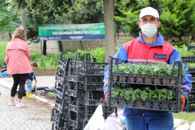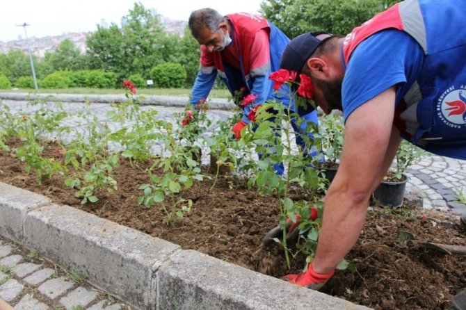 Kağıthane Belediyesi'nin ilçe genelinde yaptığı peyzaj çalışmalarıyla yüz binlerce çiçek toprakla buluştu.
