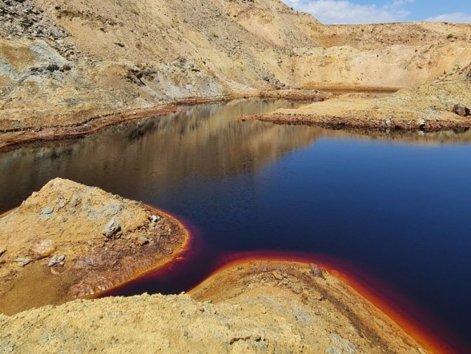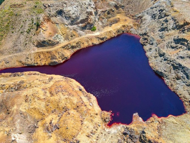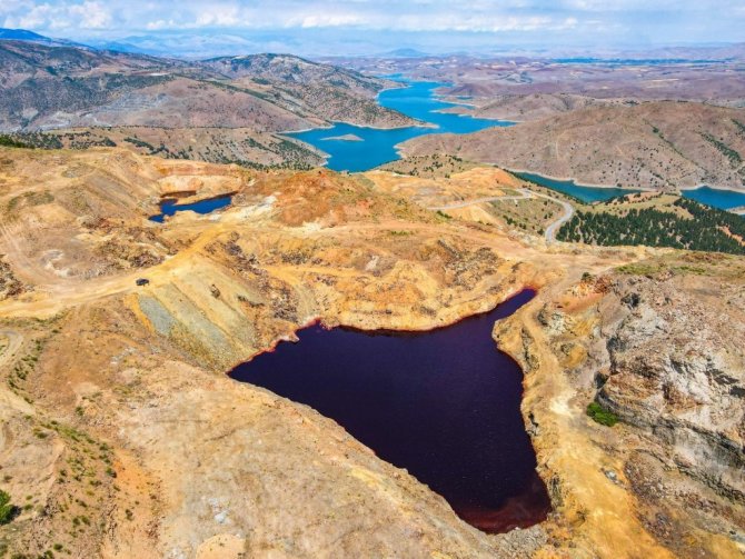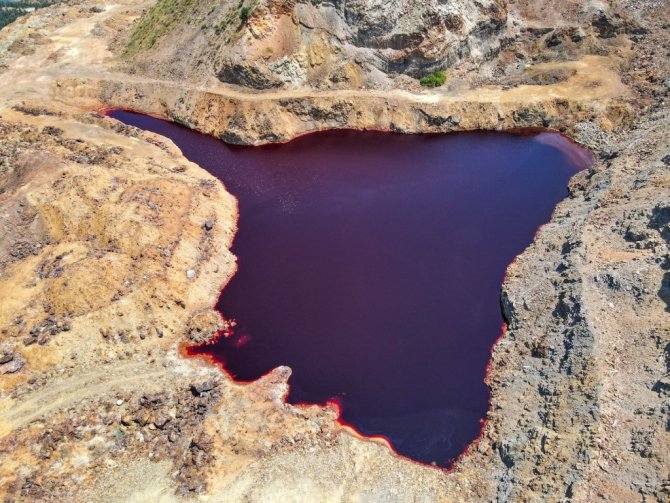 Kahramanmaraş'ta terk edilen demir madeninde yer altından çıkan doğal maden suyunun oluşturduğu "kırmızı gölet doğaseverlerin akınına uğruyor.