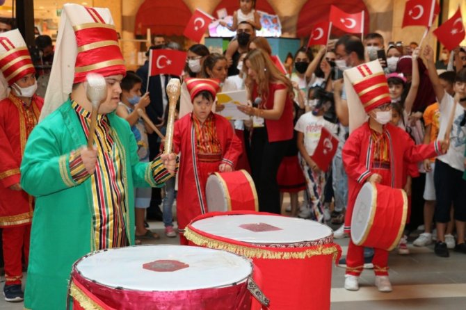 Onikişubat Belediyesi, 30 Ağustos Zafer Bayramı kutlama etkinlikleri kapsamında down sendromlu öğrencilerle birlikte Piazza alışveriş merkezinde etkinlik düzenledi.