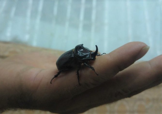 Kahramanmaraş'ta bir evde, koruma altında bulunan ve dünyanın en güçlü böceği olarak bilinen "gergedan böceği" görüldü.