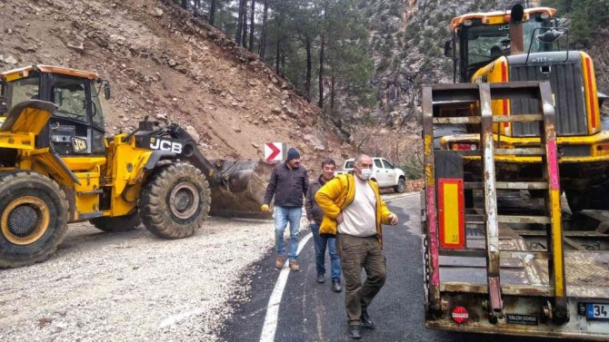 Ekipler, dev kaya parçalarını yoldan kaldırırken, bölgede güvenlik önlemi alarak sürücüleri uyardı. Temizlik çalışmaları sonrası yol yeniden trafiğe açıldı.