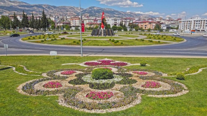 Kahramanmaraş'ta şehir merkezinde yer alan kavşaklar çiçeklerle renklendi.