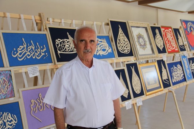 Kahramanmaraş'ta Emekli Öğretmen Yaşar Sobacı, kıl testere oymacılık naht sanatı ile ilgili 3. kişisel sergisi açtı.