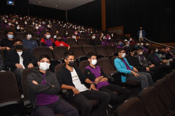 İstanbul'un işgalinden Gazi Mustafa Kemal Atatürk önderliğinde başlayan milli mücadele ve İstiklal Marşı'nın mecliste okunarak Milli Marşımız olarak kabul edildiği döneme kadar olan süreci anlatan "Akif" filmini büyük bir heyecanla izleyen öğrenciler, Dulkadiroğlu Belediye Başkanı Necati Okay'a teşekkür etti.