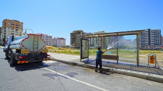 Kahramanmaraş Büyükşehir Belediyesi Çevre Koruma ve Kontrol Dairesi Başkanlığı koordinesindeki ekipler şehir genelinde vatandaşların ortak kullanım alanlarından olan kapalı otobüs duraklarında temizlik ve dezenfeksiyon çalışmaları yaptı. Çalışmalarda, şehir genelindeki toplam 750 adet kapalı otobüs durağı yıkanarak temizlendi ve dezenfekte edildi.