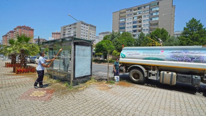 Kahramanmaraş’ta otobüs durakları temizlendi