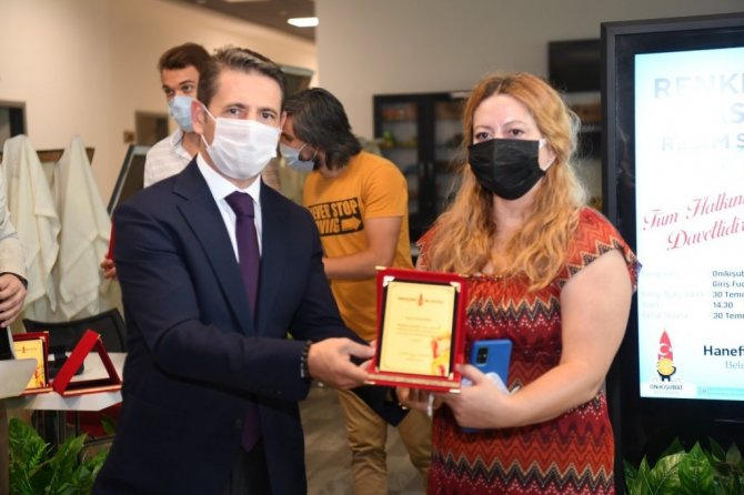 Keman dinletisiyle başlayan açılışta, sergilenen resimler davetliler tarafından gezildi. "Renklerin Hasadı" ismini hak eden eserlerin bulunduğu sergiye katılan sanatçılara plaket takdim edildi.