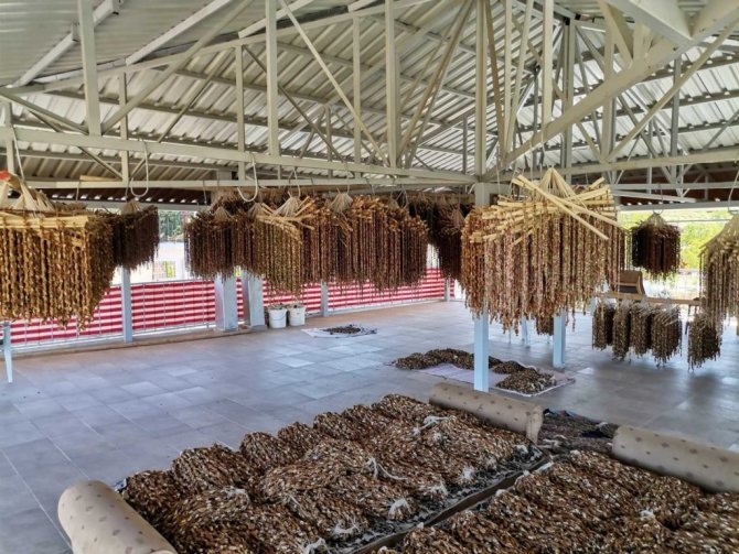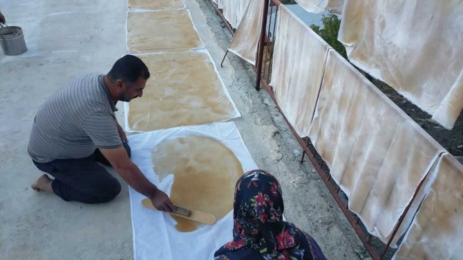 Kurumaya bırakılan bezlerden ayrılan bastıklar kış mevsiminde tüketilmek üzere stoklanıyor.