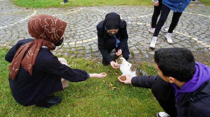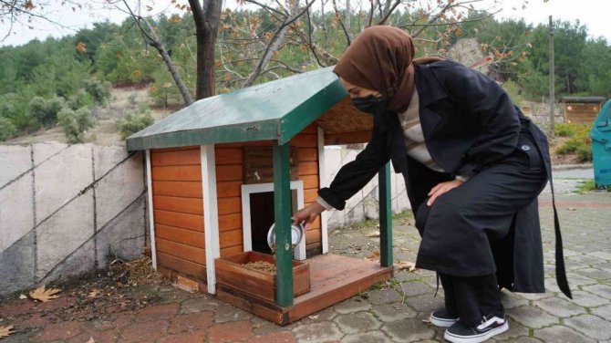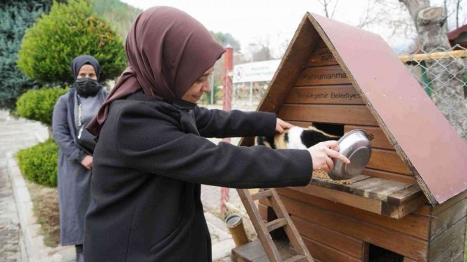 Kahramanmaraş'ta Sütçü İmam Üniversitesi İlahiyat Fakültesi'nde öğrenim gören bir grup üniversiteli, soğuk havalarda yem bulmakta zorluk yaşayan sokak...