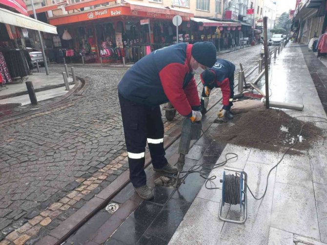 Kaldırımlarda düzenlemeler sürüyor
