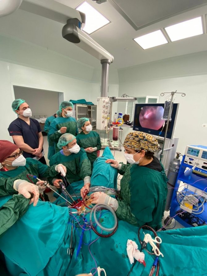 Dünyada sayılı merkezlerde kullanılan ve Türkiye'de ilk kez bir kamu hastanesinde kullanılan V-NOTES tekniği ile hastanın vücudunda herhangi bir kesik açılmadan doğal açıklıklar kullanılarak ameliyat gerçekleştirildi.