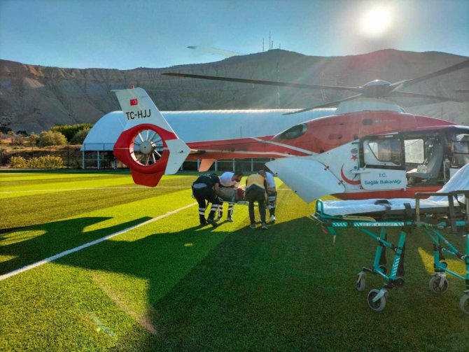 Kan kaybeden şahsın imdadına hava ambulansı yetişti