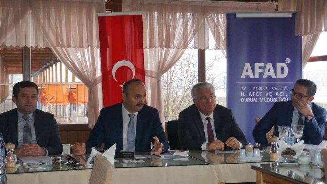 Yapılan çalışmalar neticesinde Edirne'yi etkileyebilecek 3 ana 1 kısmı afet olduğunun ortaya çıktığını söyleyen Edirne Valisi Ekrem Canalp, bunların sel ve taşkınlar, depremler, düzensiz göç hareketleri ve heyelan olduğunu ifade etti. Geçmiş tarihlere bakıldığında Edirne'nin sellerden yoğun şekilde etkilenen bir il olduğunu dile getiren Vali Canalp, Devlet Su İşleri'nin bu riskin minimize etme noktasında yoğun bir uğraş içerisinde olduğunu ve bunlardan en bilinenin de Meriç Nehri üzerinde yapılan Kanal Edirne Projesi olduğunu söyledi. Kanal Edirne Projesi'nin geçtiğimiz yıl büyük fayda sağladığını aktaran Vali Canalp, saniyede 750 metreküplük suyun bu şekilde kent merkezi ve Karaağaç bölgesini etkilemeksizin bir baypas kanalı şeklinde nehrin alt kısımlarına aktarılmasının afetlerden önce devlet tarafından alınması gereken tedbirlere en güzel örneklerden birisi olduğunu ifade etti.