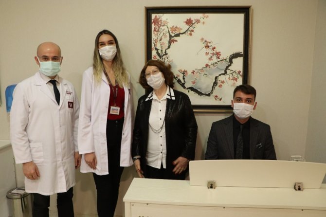 Hastanın müzikle terapi aldığı sırada odada bulunarak hastanın duygu durumu ile ilgili notlar alan Uzm. Klinik Psikolog Buse Gümüş, "Onkoloji kliniğimizde başlatmış olduğumuz kanser mücadelesinde hastalarımıza psikolojik destekte de bulunuyoruz. Medikal onkolojinin yanında tedavi sürecinde psikolojik desteğin de hastalarımızda çok etkili olduğu zaten görülmüştür. Yaptığımız çalışmalarla da bu kanıtlamıştır. Hastalarım ve danışanlarımla birlikte bu süre zarfını birlikte yürütüyoruz. Bu süreçte hastalarda çoğunlukla depresyon ve anksiyete bozuklukları çok sık görüldüğü ve aynı zamanda tedavi esnasında ilaç aldıkları için hastalar ruhsal yönden etkilenebiliyor. Ben de onların yanında olarak depresyon ve anksiyete sürecini yönetiyorum" diye konuştu.