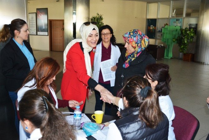 Başkan Adnan Yaşar Görmez’in eşi Arzu Görmez, ilçede bir ay süreyle görev yapacak sağlık çalışanlarına ve doktorlara teşekkür ederek ilçenin tanıtım setini hediye etti.