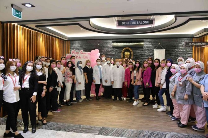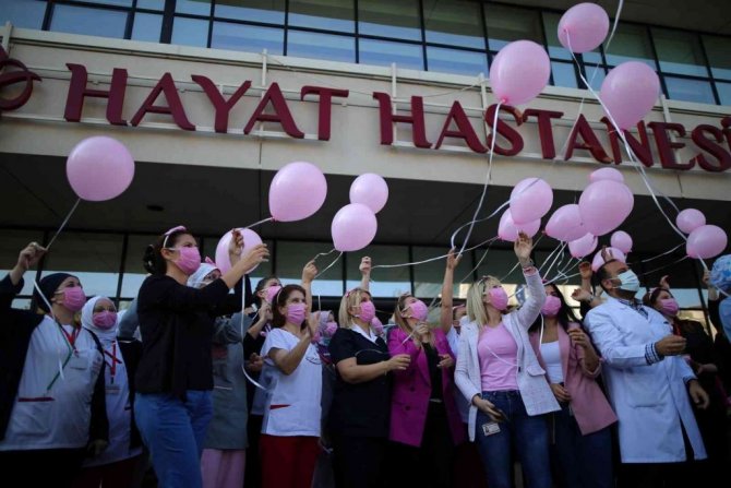 Özel Hayat Hastanesi çalışanları, meme kanserine dikkat çekti. Sağlık çalışanları, 1-31 Ekim Meme Kanseri Farkındalık Ayı dolayısıyla "Meme kanserine veda notu" panosuna farklı notlar yapıştırarak kanserin önemine dikkat çekti. Pembe taç takan çalışanlar, pembe balonları da uçurmayı ihmal etmedi.
