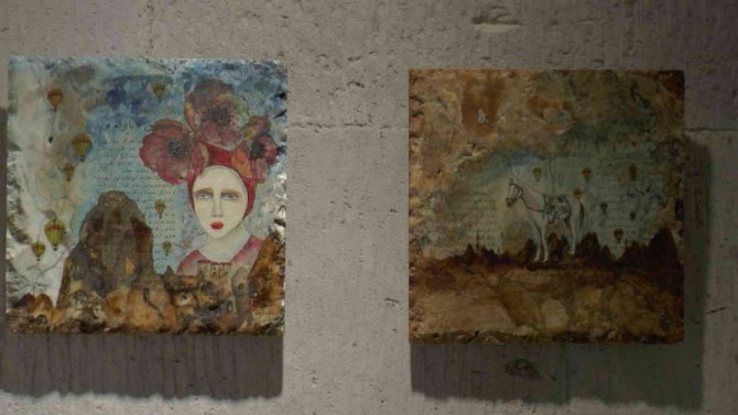 Resim Sanatçısı Hatice Abalı da, "Çalışmalarımı illüstrasyon üzerine devam ediyorum. Uluslararası ve Türkiye'de birçok sergide bulundum. Yaptığım çalışmaları taş üzerine resmediyorum. Özellikle geçmişten bugüne gelene kadar bir yaşanmışlığı olması sebebiyle enerjisi çok güzel ve etkileyici. Bu taşlarımız aynı zamanda oniks taşı olarak biliniyor. Bu taşlar yüzyıllar içerisinde, farklı minarelerle beraber günümüze kadar ulaşıyor. Doku olarak, renk olarak, sergide bulunan taşların hepsi birbirinden farklı. Süreç içerisinde antikacılardan toparladığım kupürleri, kullandığım malzeme ve materyallerle bu güne taşımak istedim. Taş yaşanmış ve geçmişten gelen bir ürün. Bu kupürler dönem itibariyle, kadınlara yönelik, haberler, magazin haberleri ve unutulmaya yüz tutmuş, pazarlarda yerlerde satılan dergilerdendi. Bunları biriktiriyordum. Fakat çalışırken sadece bu güne taşıma ve ritim olarak resme taşıma ihtiyacı duydum. Derdimi, duygularımı düşüncelerimi illüstrasyonla anlatıyorum. Bölge çok zengin bir bölge. Küçüklüğümden beri gördüğüm, duyduğum ve anlatılan efsaneler şu anki resimlerimin konusu oldu" şeklinde konuştu.