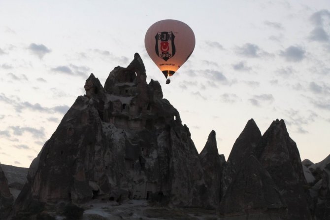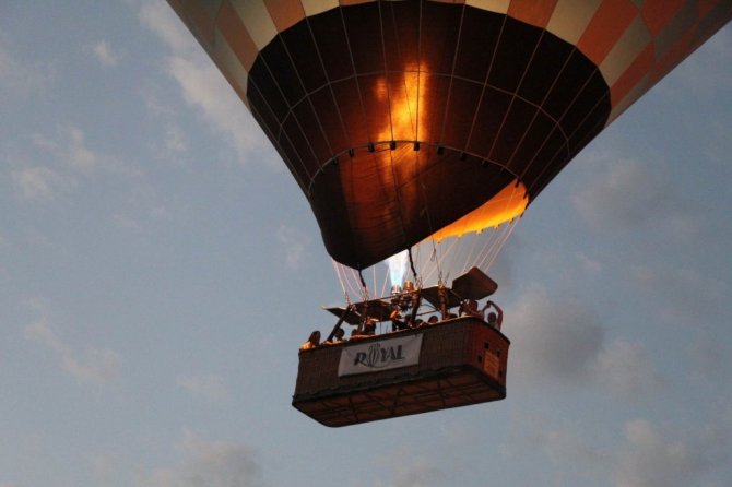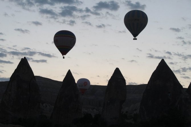 Kapadokya bölgesini kuşbakışı izlemenin mutluluğunu yaşayan yerli ve yabancı turistler gökyüzünde yaklaşık bir saat boyunca bu anların keyfini yaşadı.