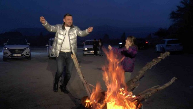 Kapadokya’nın soğuğunda halay çekerek ısındılar