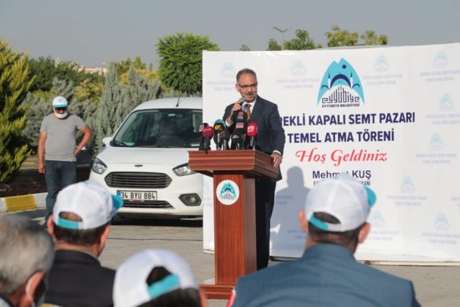 Temel atma töreninde konuşan Eyyübiye Belediye Başkanı Mehmet Kuş, "İki yıla çok şey sığdırdık. Şimdi bunları anlatmaya başlarsak çok vaktimizi alır. Sizleri bu sıcak altında bekletmeye gönlüm el vermiyor. Saha ziyaretleri kapsamında Direkli Mahalle Muhtarımız Mehmet Kestop'la birlikte vatandaşlarımızı ziyaret edip, taleplerini alırken bizlerden istedikleri bir semt pazarıydı ama malumunuz bu bölgede yer sıkıntısı var. Bunun için kolları sıvadık, çalıştık, uğraştık ve yer sorununu çözüme kavuşturduktan sonra hemen projemizi hazırladık. İhalemizi gerçekleştirdik. Hamdolsun şimdi de modern kapalı semt pazarı ve zabıta karakolumuzun temelini atıyoruz. İnşallah gece gündüz demeden çalışıp, talepleri bir bir yerine getirmeye devam edeceğiz. Bölgemize şimdiden hayırlı olsun" dedi.