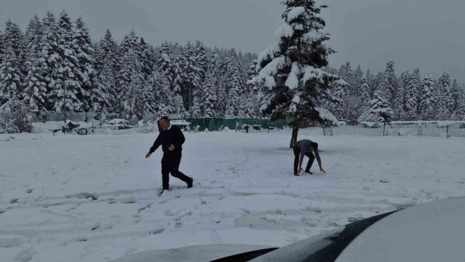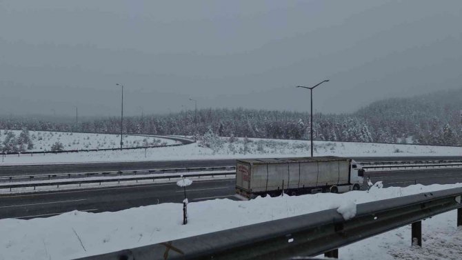 Ankara-İstanbul Otoyolu Cankurtaran mevkiinde kar yağışı etkili olurken, sürücüler ise cep telefonları ile bol fotoğraf çektirdi.