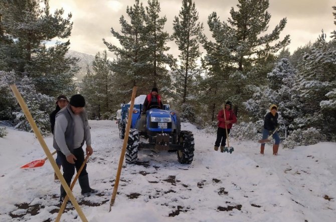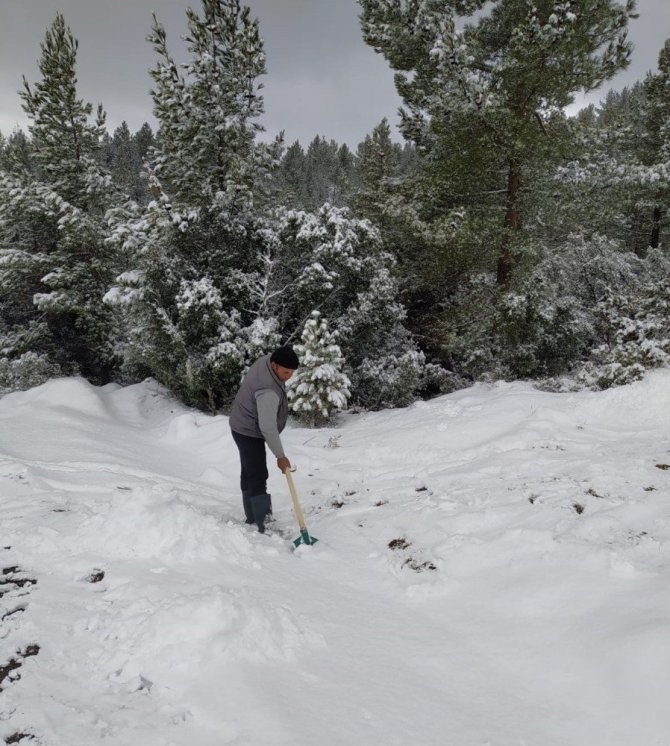Çameli'nin yüksek rakımlı mahallesi olan Emecik Mahallesinde yaz aylarında kullanılacak karların saklanması için yüksek kesimlere çıkan mahalle sakinleri, topladıkları karları kuyulara gömdü.