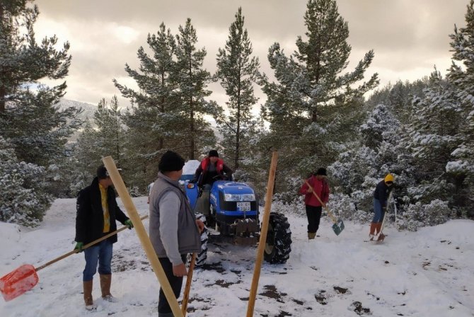Çameli'nin yüksek rakımlı mahallesi olan Emecik Mahallesinde yaz aylarında kullanılacak karların saklanması için yüksek kesimlere çıkan mahalle sakinleri,...