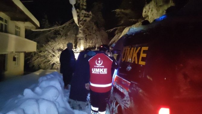 Kar nedeniyle köy yolu kapanan hastanın imdadına UMKE ekipleri yetişti