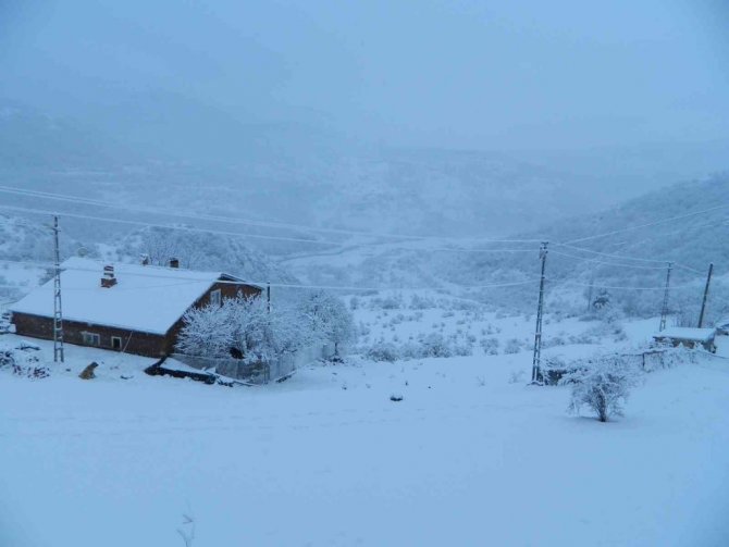 Ardahan'da 1500 rakımlı Posof vadisi yağan karla beyaza büründü.