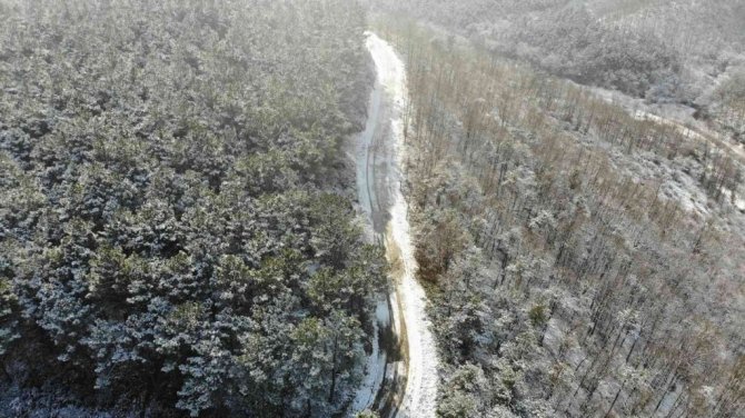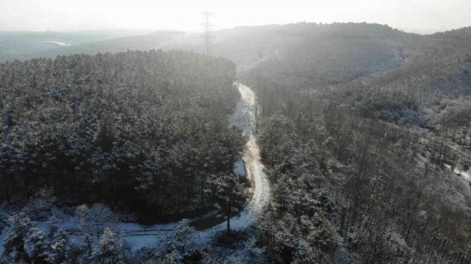 Kent genelinde 2 gündür yağan kar yağışı sonrasında Kemerburgaz Ormanları'nda oluşan masalsı görüntüler drone ile havadan görüntülendi.