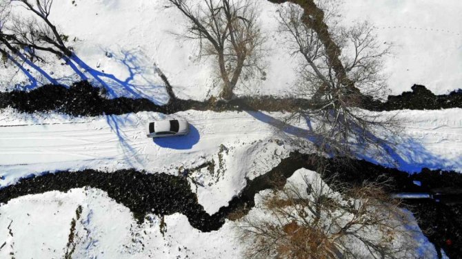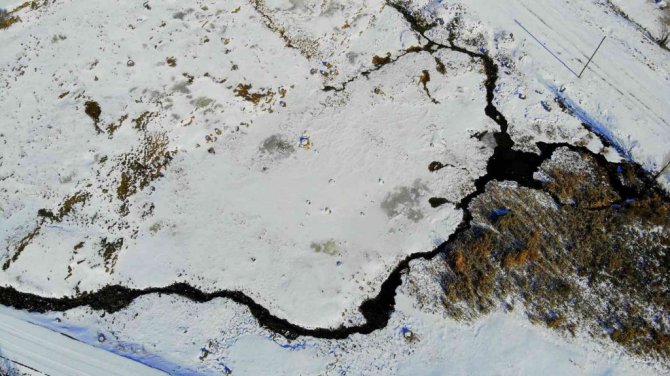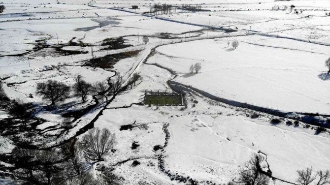 Adeta beyaz bir çarşafı anımsatan uçsuz bucaksız ovalardaki beyaz esaret havadan drone ile görüntülendi.