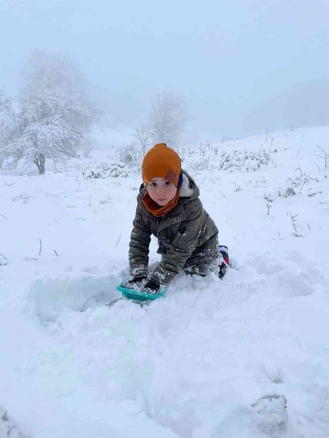 Bilecik'te yüksek kesimlere yer yer 30 santimetreye ulaşan kar kalınlığı nedeniyle hafta sonu vatandaşlar Kapaklı köyüne koştu. Çocuklar mevsimin ilk karında doyasıya eğlenirken, kardan adam yapmayı unutmadı.