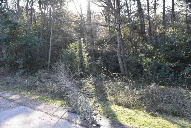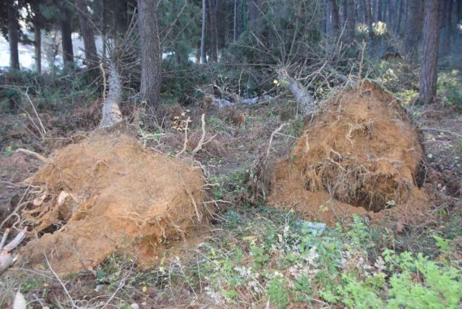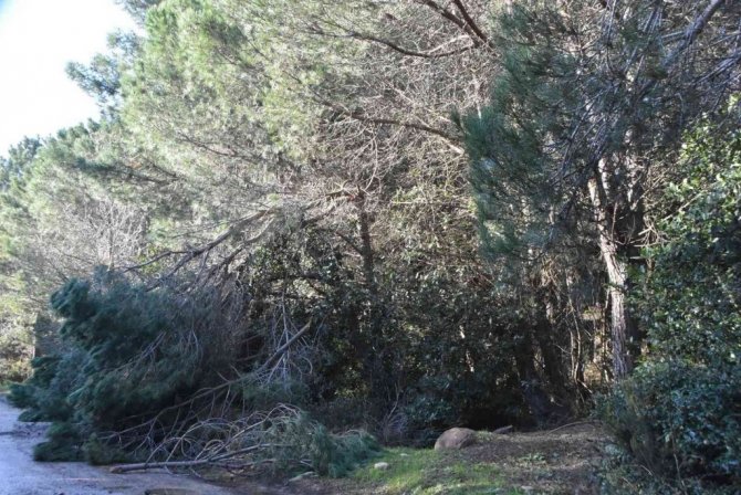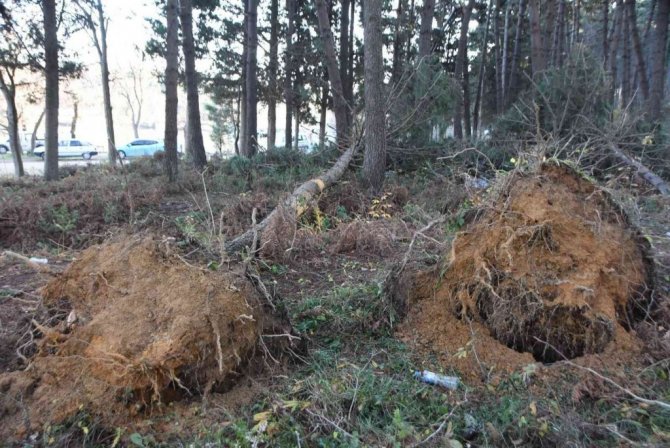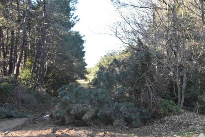 Devrilen ve devrilme tehlikesi geçiren ağaçlar, yetkililer tarafından kaldırılmayı bekliyor.