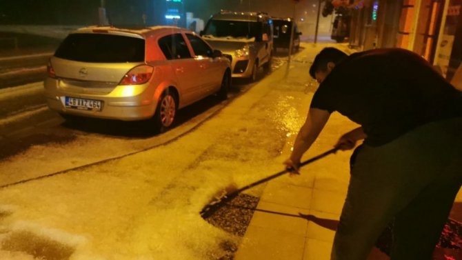 İlçe genelinde etkili olan ve her yeri kar yağmışçasına bembeyaz yapan dolu, yağışın yağmura dönmesi ile eriyip gitti. İlçede dolu sonrası oluşan manzara objektiflere bu şekilde yansıdı.