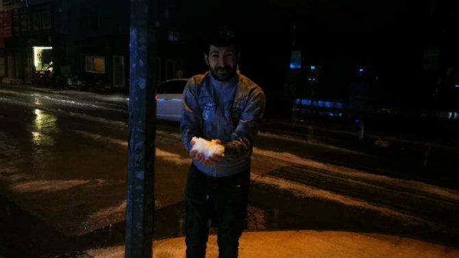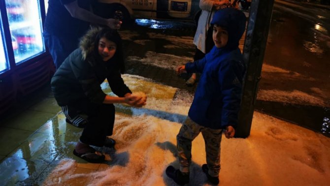 Kar yağışına hasret Marmarisliler, yağan doluda doyasıya eğlendi