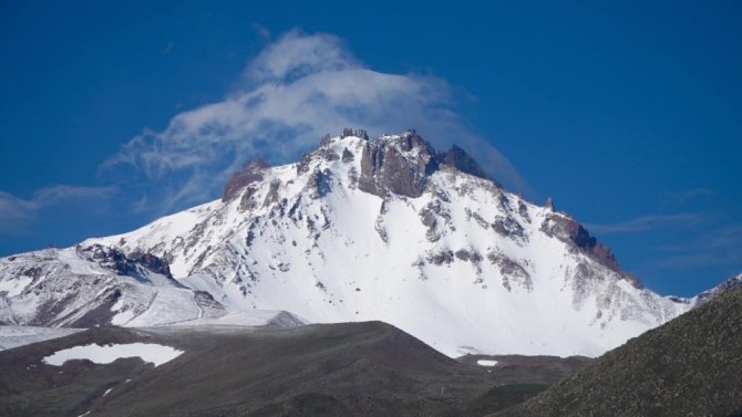 Haziran ayında yağan kar sonrasında 3 bin 917 metre yükseklikteki Erciyes Dağı beyaza büründü.