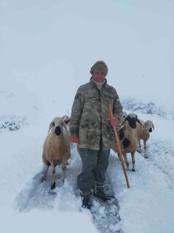 Kara yakalanan çobanların sürüleri ile göçü böyle görüntülendi