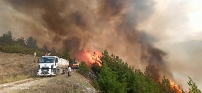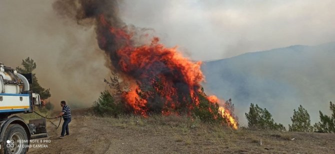 Karabük yangını rüzgarın etkisiyle ilerliyor