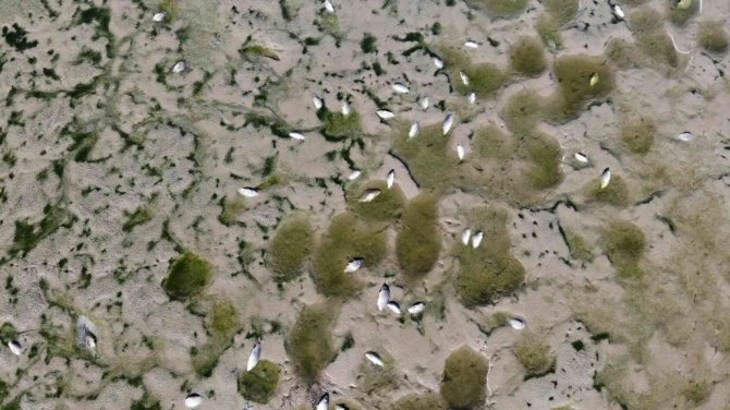 Karabük'ün Eskipazar ilçesindeki Bulduk Barajı Gölünde irili ufaklı binlerce balık telef oldu.